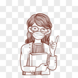 校园防疫女教师人物线条元素