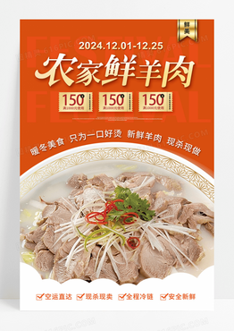 时尚橙色简约农家鲜羊肉冬日美食海报