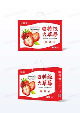 红色简约小清新草莓包装礼盒设计