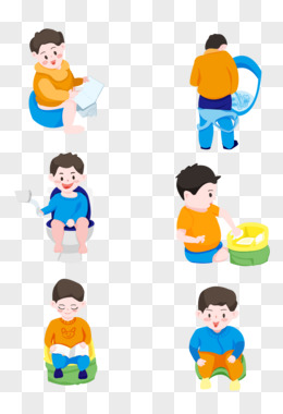 一组卡通教育儿童文明如厕套图之正确姿势元素