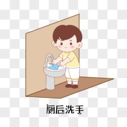 一组卡通教育儿童文明如厕套图之便后洗手元素