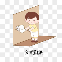 一组卡通教育儿童文明如厕套图照顾之不浪费纸元素
