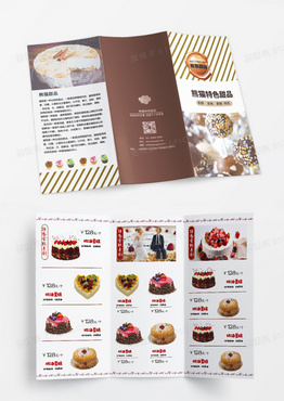复古甜蜜蛋糕店宣传折页制作三折页模板蛋糕三折页