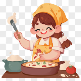 卡通小女孩和小狗一起卷毛线场景免抠元素