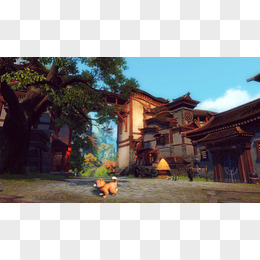 卡通手绘禁止男孩追打小猫咪场景免抠元素