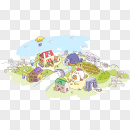 手绘卡通小女孩玩斗鸡游戏场景免抠元素