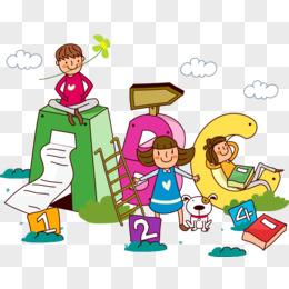 手绘免抠卡通跳绳的女孩和狗狗素材