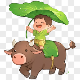 卡通风中元节小男孩放莲花灯场景免抠元素