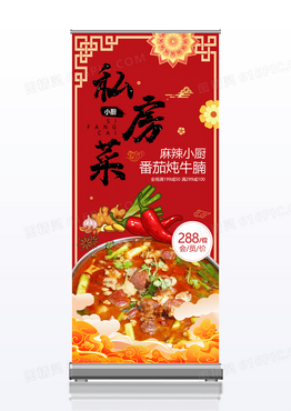 红色私房菜美食宣传易拉宝展架