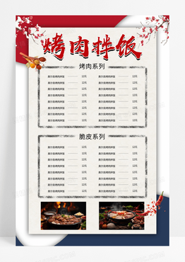 红色简约中国风烤肉拌饭美食小吃菜单海报