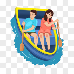 手绘情侣踏青郊游拍照划船泛舟场景素材