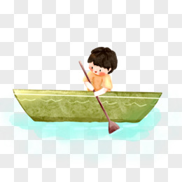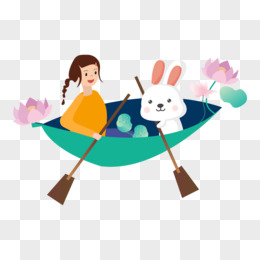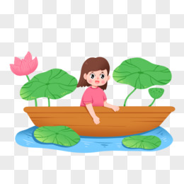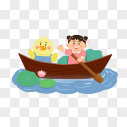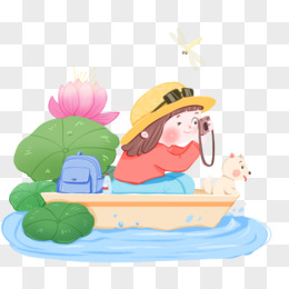 手绘可爱卡通夏天小女孩悠闲的乘船插画元素