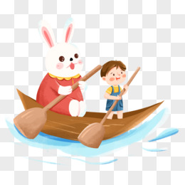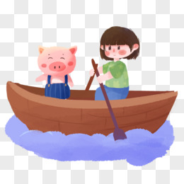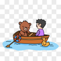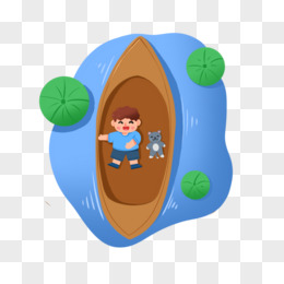 卡通手绘男孩和小动物躺在船上休息免抠素材