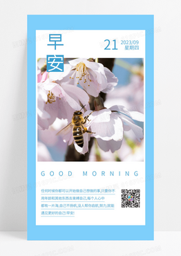 蓝色鲜花小雏菊背景清新简约早安日签海报设计手机海报