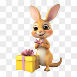 3D风格小动物袋鼠和生日礼物盒免抠元素