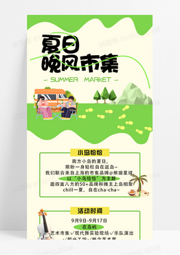 活动促销夏日晚风市集卡通简约绿色手机宣传海报