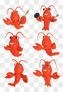 一组C4D红色卡通小龙虾合集3d元素