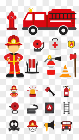 手绘扁平消防员拿着消防斧和消防水管免抠元素