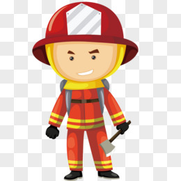 儿童简笔画消防一个消防员提着安全绳和灭火器免抠元素