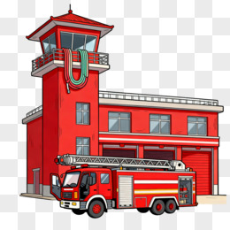 卡通风消防站建筑免抠元素