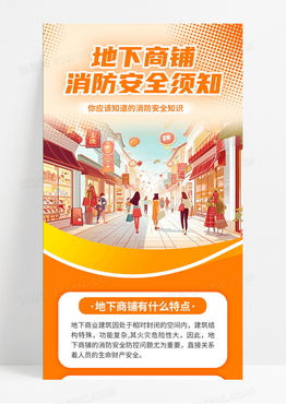 橙色地下商铺消防安全须知消防知识消防科普长图手机海报