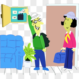 一组手绘消防工具斧头消防栓铲子灭火器元素