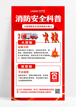红色创意消防安全消防小知识科普火灾灭火器手机海报消防手机文案海报