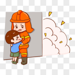 卡通消防员营救小男孩元素