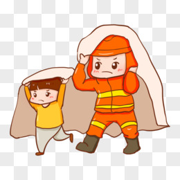 手绘插画风消防员给小朋友讲解森林防火科普场景免抠元素