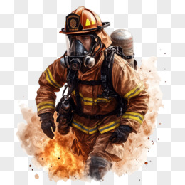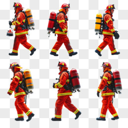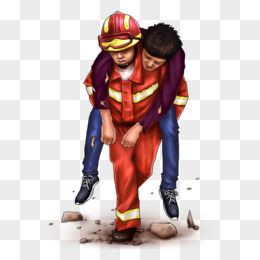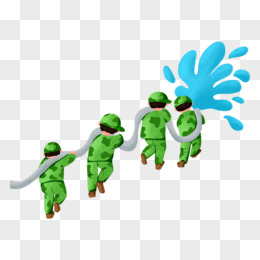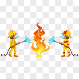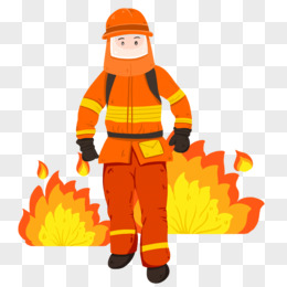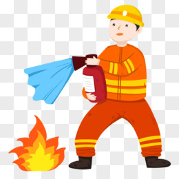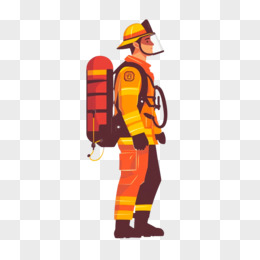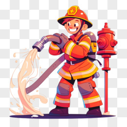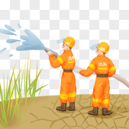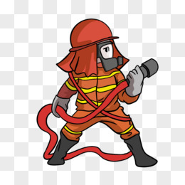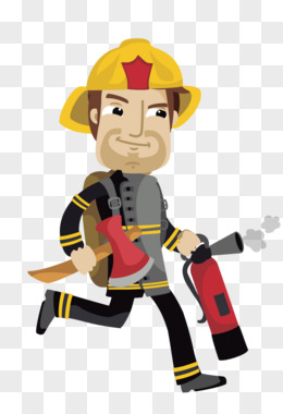 手绘扁平消防员拿着消防斧和消防水管免抠元素
