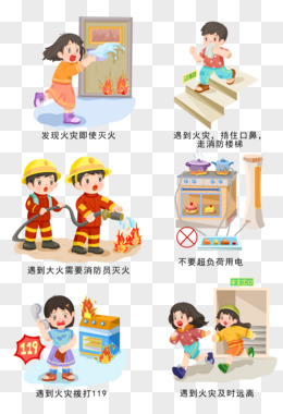 一组手绘卡通消防知识文字说明套图合集素材之会逃生