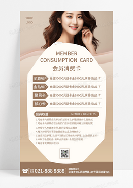 时尚咖色摄影会员消费卡美容价目表手机文案海报