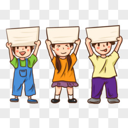 手绘卡通多位小孩举牌插画免抠元素