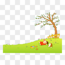 卡通手绘两个小孩躺草地睡觉免抠素材