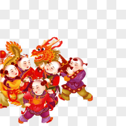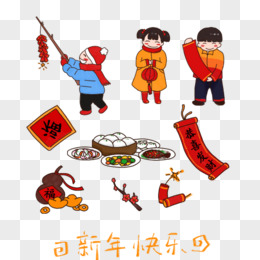 卡通手绘免抠虎头虎脑的小孩玩烟花元素