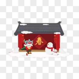 插画新年习俗两个小孩在门前扫雪免抠元素