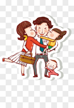 父亲节父子父女拥抱大人小孩卡通手绘元素