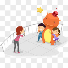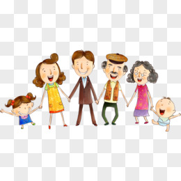 手绘卡通大人张灯结彩小孩们玩耍场景免抠素材