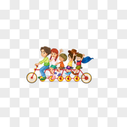 一群小孩骑着自行车上学免抠素材