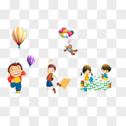 手绘卡通气球小孩