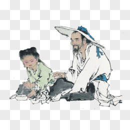 卡通手绘妈妈带小孩和舞狮子的人玩耍免抠元素
