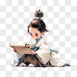 原创卡通古风小孩看书读书元素
