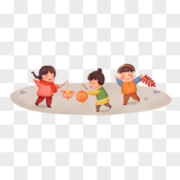 手绘卡通新年元宵小孩们玩耍场景免抠素材