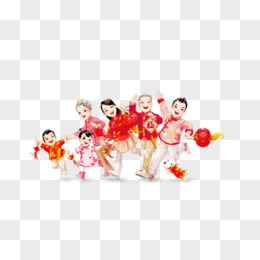 剪纸风小孩抱着红色大鲤鱼免抠元素