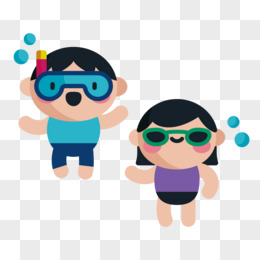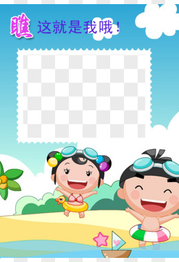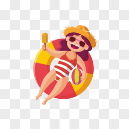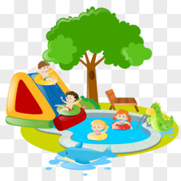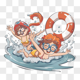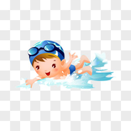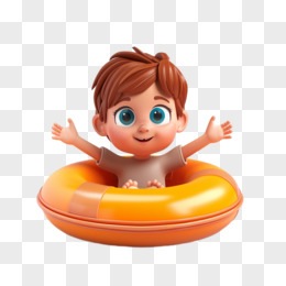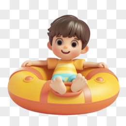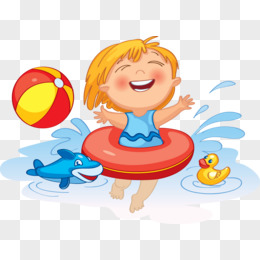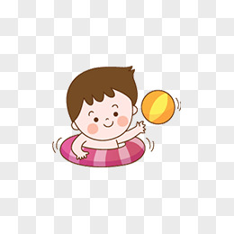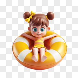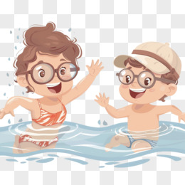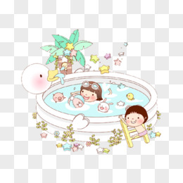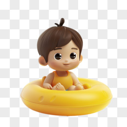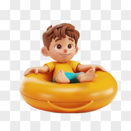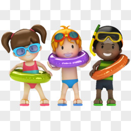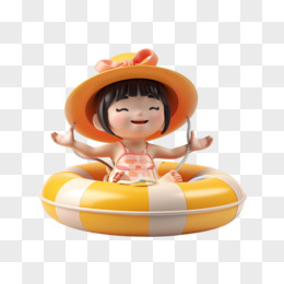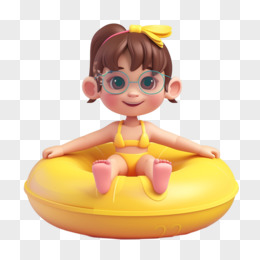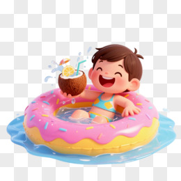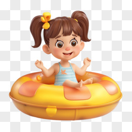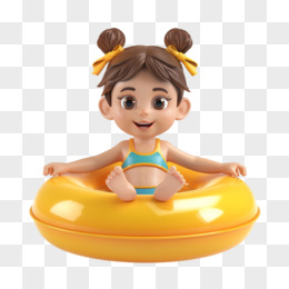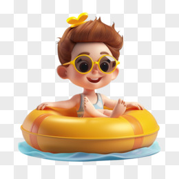 3D风夏天高温消暑小孩游泳画面免抠元素