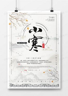 蓝色渐变冬天雪人二十四节气小寒艺术字