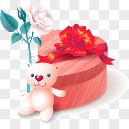 矢量圣诞情人礼物盒小熊玫瑰