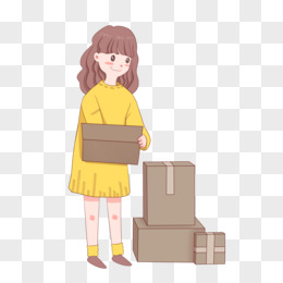 手绘购物季主题之拆快递盒的女孩