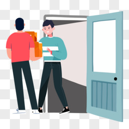 快递小哥送货上门签收场景元素