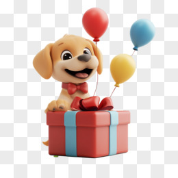3D风格小动物小狗和生日礼物盒免抠元素